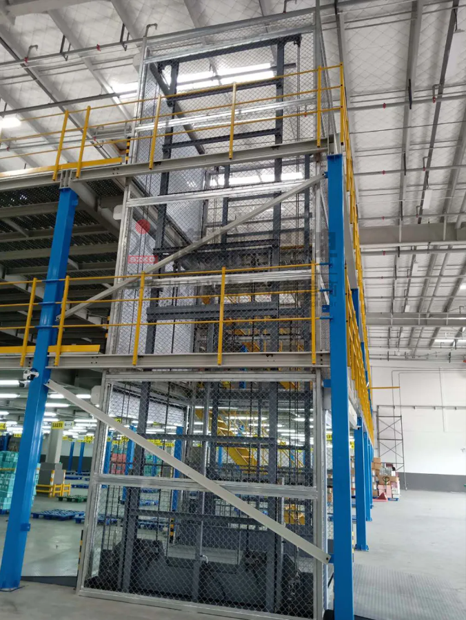南京某物流公司二樓,搭建了三層閣樓貨架。使用我們的升降機(jī)實(shí)現(xiàn)了平臺的完美對接,取貨存貨、上下運(yùn)貨,輕松搞定。
