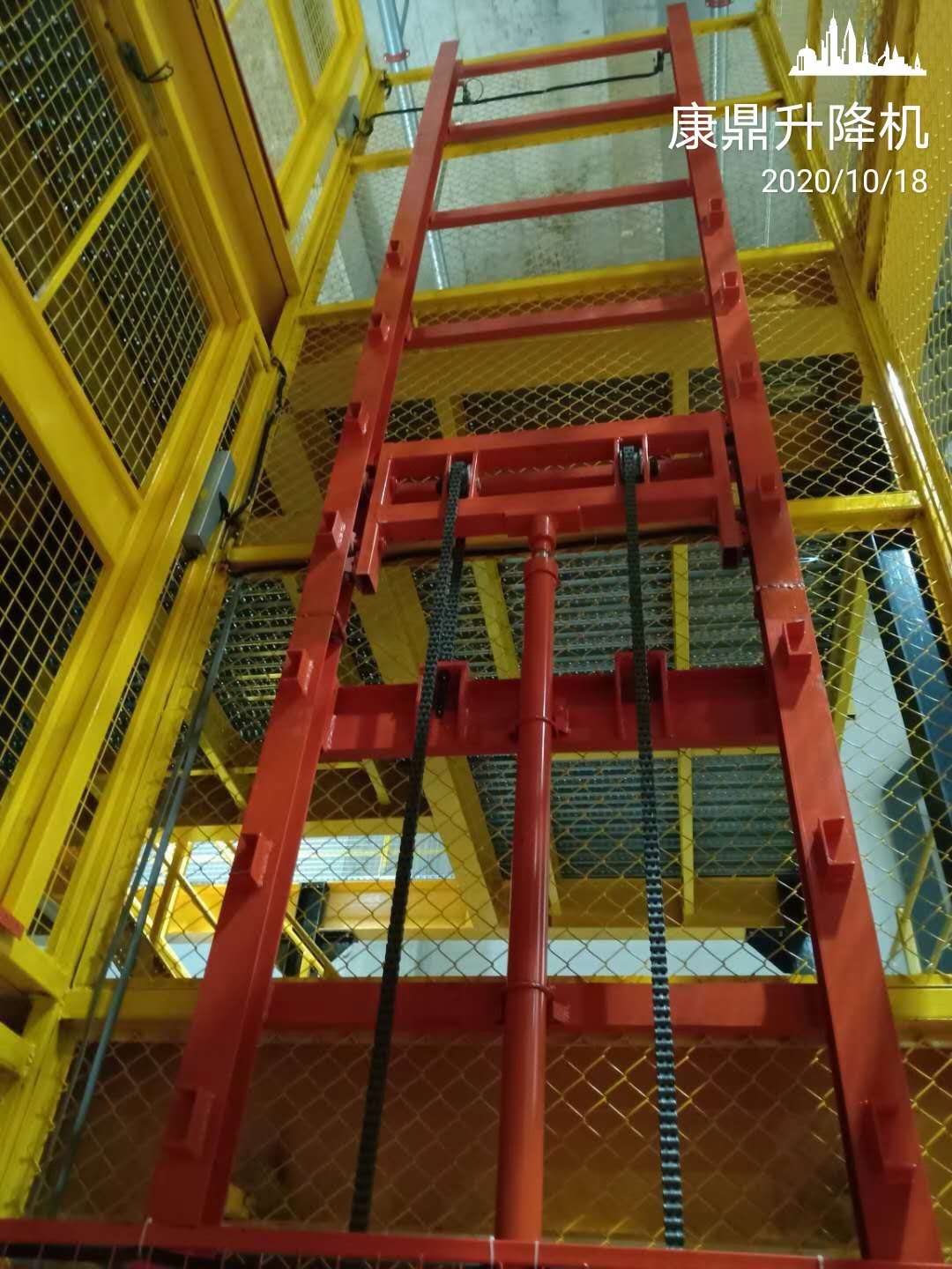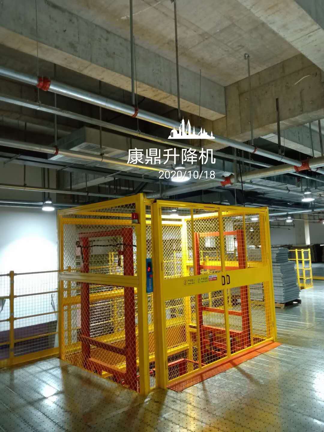佛山某跨境電商集散中心? 上千萬的閣樓貨架項目,配套了康鼎的四臺? 導軌式升降機!