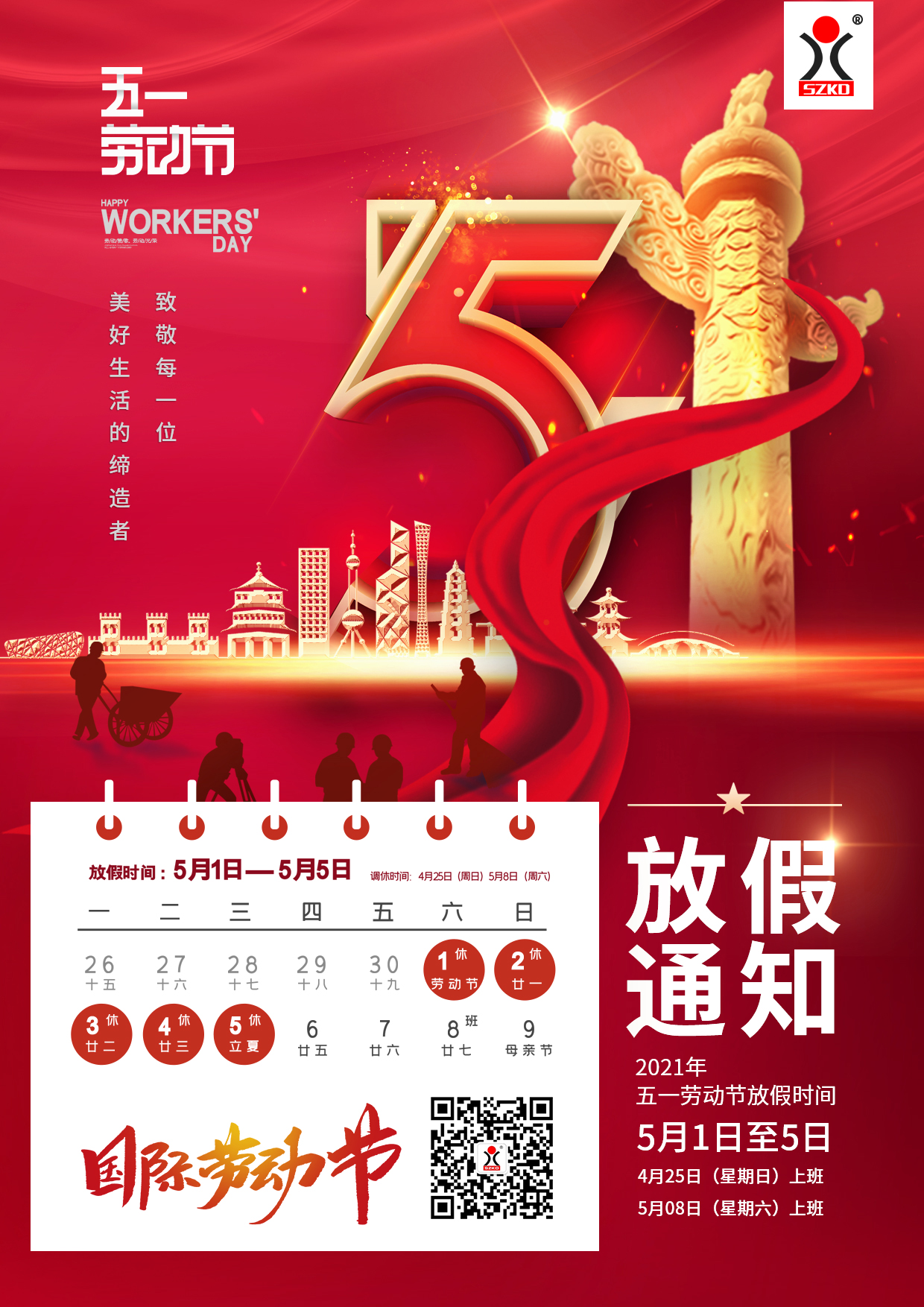 根據(jù)《國(guó)務(wù)院辦公廳公布2021年放假安排》,結(jié)合公司的實(shí)際情況,現(xiàn)將五一期間放假安排通知如下: