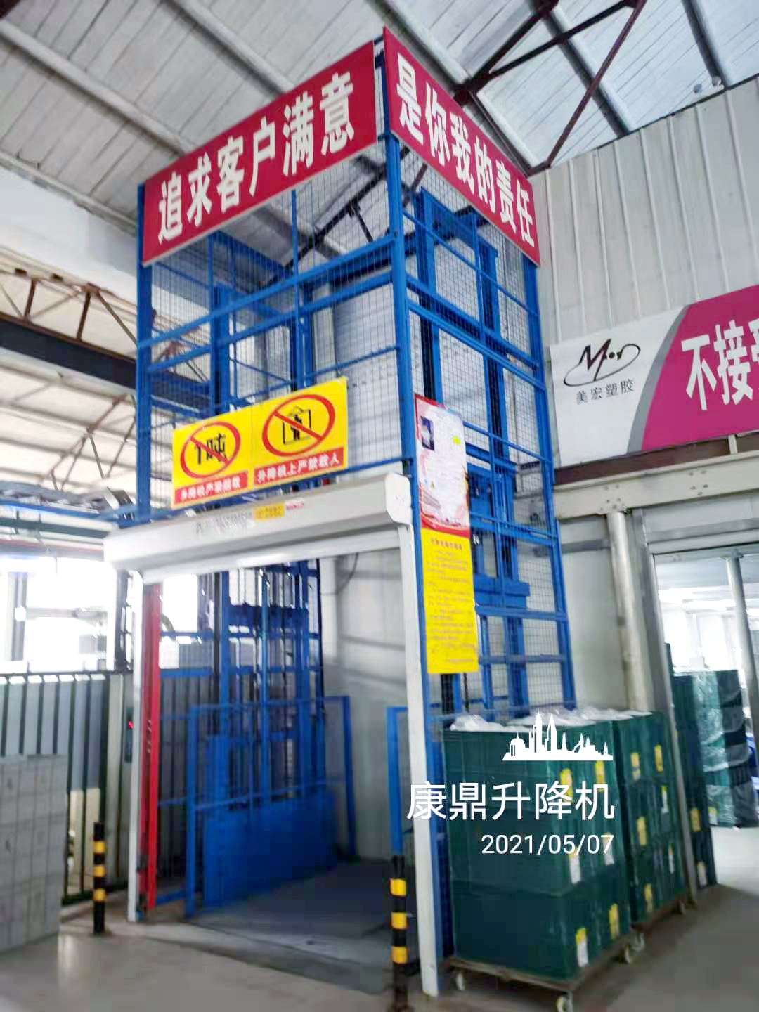 一泰州客戶車間內,有我們康鼎四年前安裝的導軌式升降機,經過升降測試,機器一切正常,客戶的生意做的越來越好了!現(xiàn)在客戶倉庫內搭建鋼平臺、增大倉儲容量,康鼎升降機必須再來一臺