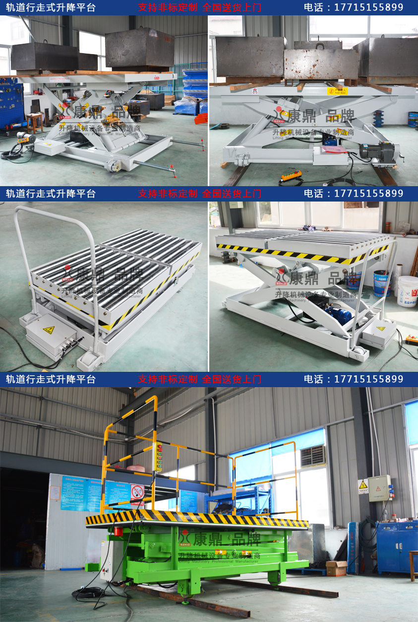 軌道行走式是剪叉式升降平臺形式,底部導輪設計,配套槽鋼固定軌道行走的一種升降平臺。